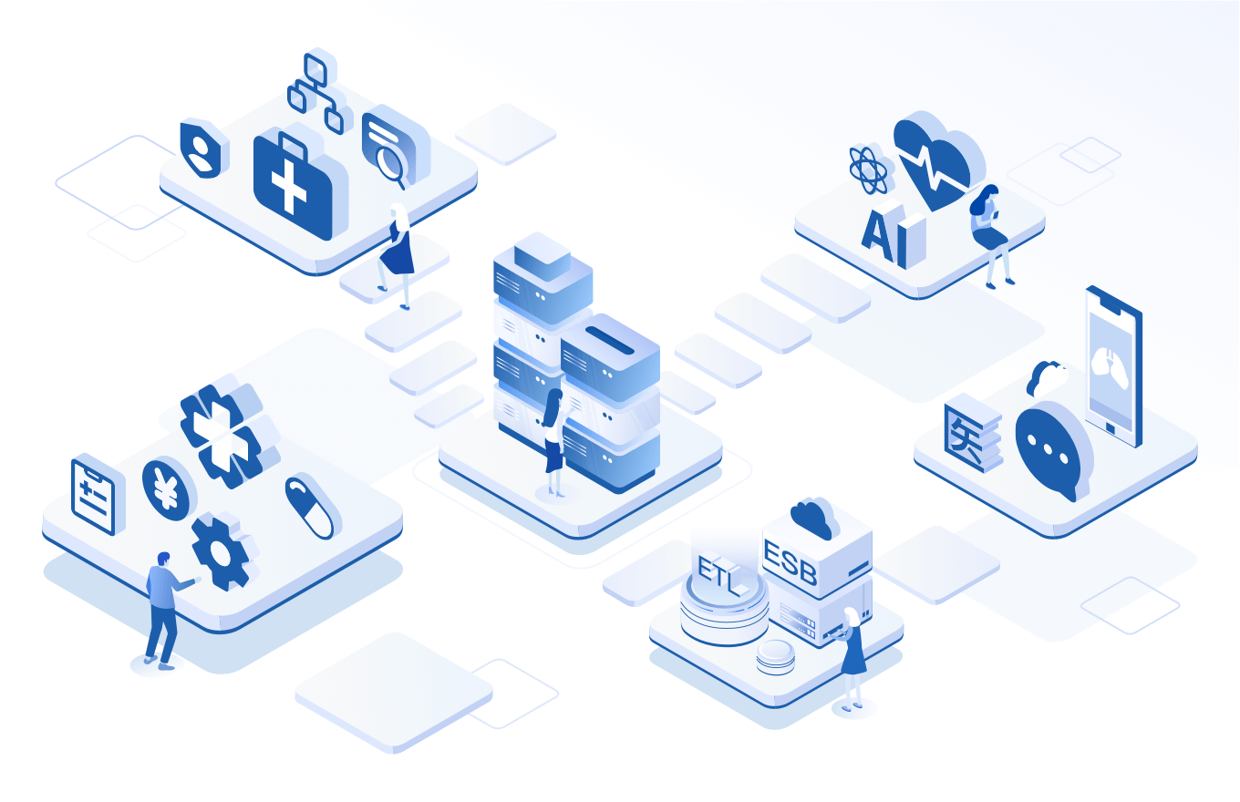 通过整合医院信息集成平台、医疗大数据平台和应用服务平台,在各应用系统间实现标准的信息共享和交换,使现有各业务信息系统的信息和数据共享,消除医院系统信息孤岛,实现医疗护理流程的闭环管理,全面优化和整合医院内部的资源以及医院外部全社会的信息资源。