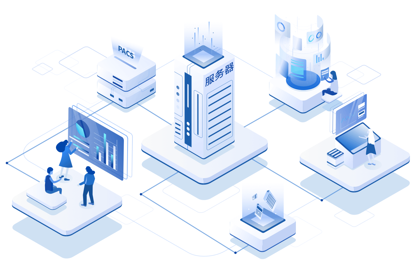For the requirements of big data and the high security of hospitals, a localized server solution can be employed. After uploading the data to the server, AI can help the researchers complete the annotation, lesion segmentation, feature extraction, algorithm modeling, and result analysis. According to the results, the corresponding prediction models can be used. Finally, relevant data and models can be exported to scientific paper writing.